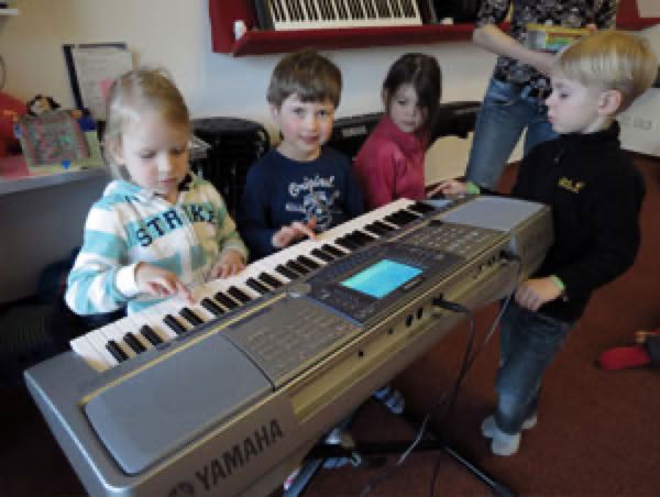 Fröhlich singen und dazu mit Keyboard, Gitarre, Blockflöte oder Rhythmusinstrumenten einfache Begleitungen spielen. Im Mittelpunkt stehen die Entwicklung der Stimme und des musikalischen Gehörs und die Rhythmusschulung.