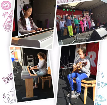 Einige Schüler der YMS Norderstedt spielen auf dem Straßenfest Ulzburger Straße.